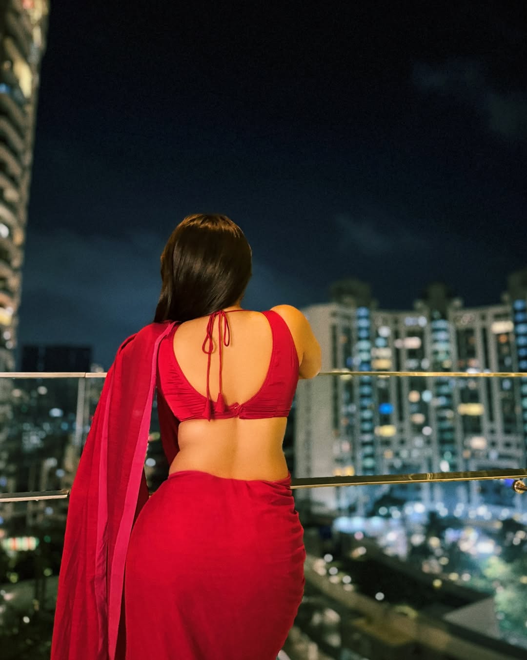 బాలీవుడ్ నటుడు శమా సికిందర్ తన ఎరుపు సారి లుక్ను ఇన్స్టాగ్రామ్లో షేర్ చేసి అభిమానుల హృదయాలను గెలిచారు. రాత్రి నగర దీపాల మధ్య బాల్కనీలో తీసిన ఫోటో ఒక కల లాంటి అందాన్ని చూపిస్తుంది. “Kya kal kisne is saal ka sabse bada chaand dekha???” అనే ఆమె హాస్యమైన క్యాప్షన్ కూడా వైరల్ అయ్యింది.