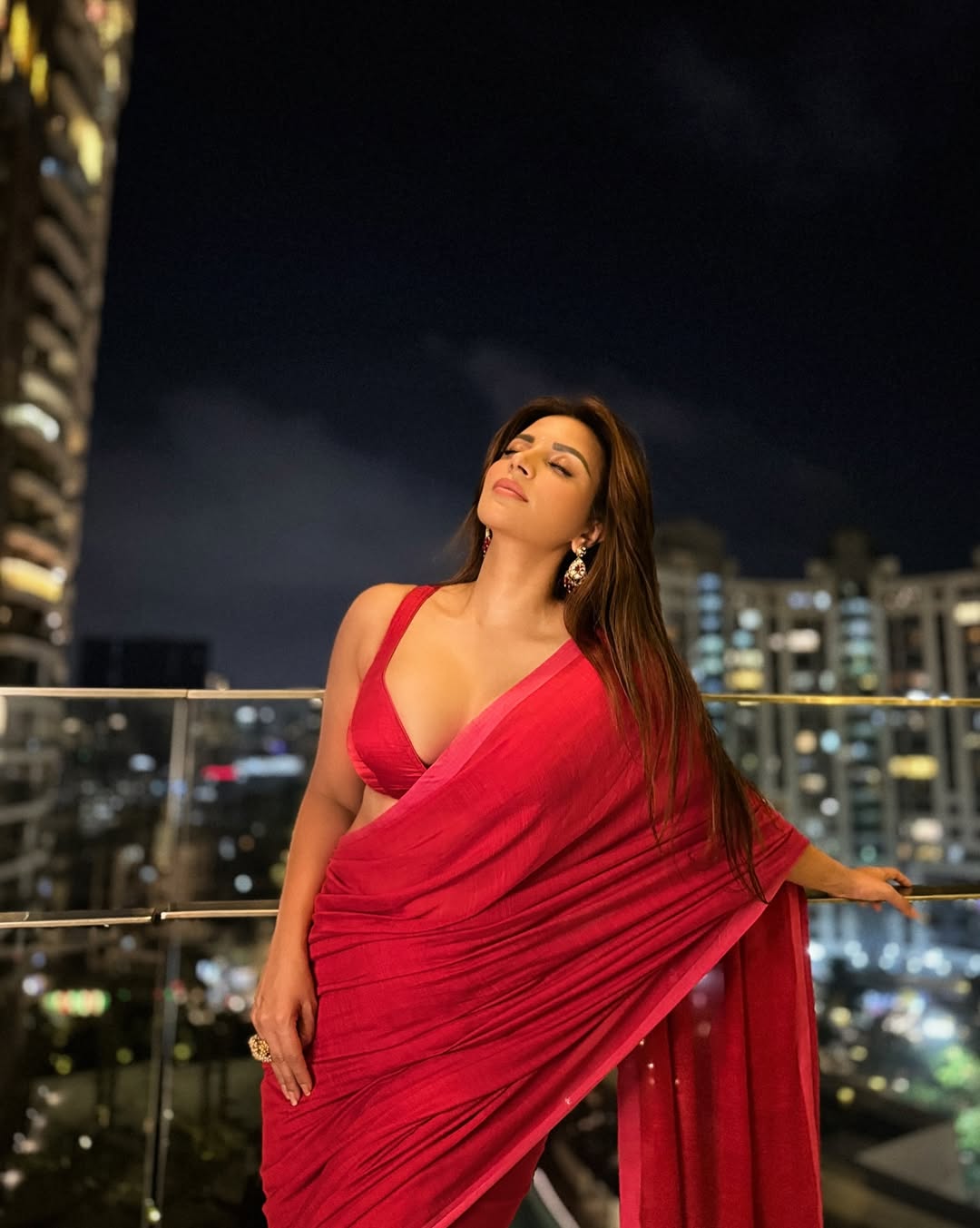 బాలీవుడ్ నటుడు శమా సికిందర్ తన ఎరుపు సారి లుక్ను ఇన్స్టాగ్రామ్లో షేర్ చేసి అభిమానుల హృదయాలను గెలిచారు. రాత్రి నగర దీపాల మధ్య బాల్కనీలో తీసిన ఫోటో ఒక కల లాంటి అందాన్ని చూపిస్తుంది. “Kya kal kisne is saal ka sabse bada chaand dekha???” అనే ఆమె హాస్యమైన క్యాప్షన్ కూడా వైరల్ అయ్యింది.